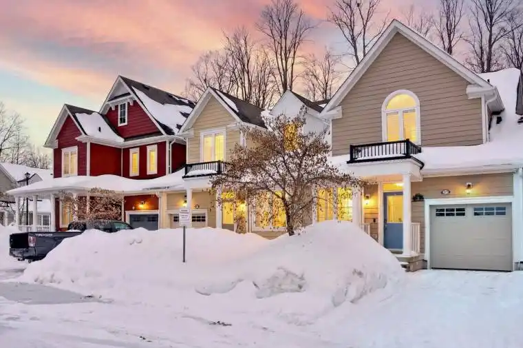 Enjoy private, peaceful living in the sought-after neighbourhood known as New England Village at the east end of Wasaga Beach. With its charming architecture and tucked away with no rear neighbours this spacious and beautifully maintained townhome backs onto a quiet walking trail with a treed setting and provides a sense of privacy and calm. The backyard is a true retreat, featuring mature trees, stunning perennial gardens, armored stone landscaping, stamped concrete walkways (2022), and inviting patio and deck spaces perfect for relaxing or entertaining. This bright and inviting townhome offers private parking with visitor parking close by, a single -car attached garage with inside entry and a true sense of community. As you enter the 1,700 sf living space plus fully finished lower level you will enjoy the thoughtful touches including a custom fireplace feature wall in the living room, high vaulted ceilings, main floor powder room, adjacent kitchen with stainless steel appliances and dining area with direct backyard access all blending comfort with elevated style. A spacious main floor primary suite offers comfort and privacy which includes a large walk in closet and 5pc bath. Upstairs a cozy loft offers lots of opportunity for office space or sitting area with the addition of two guest bedrooms and 4pc bath. Fully finished lower area provides more entertaining space with two media rooms, 4th bedroom and bathroom along with laundry facilities. This great family or lifestyle retreat is ideally located close to the new community arena and library, new high school with theatre, shopping and beaches meanwhile quick access to Barrie. Maintenance fees also provide worry-free living, covering lawn care, fall cleanup, common repairs, and exterior upkeep. This warm and welcoming year round home offers the perfect blend of space, style and thoughtfully designed for easy living.