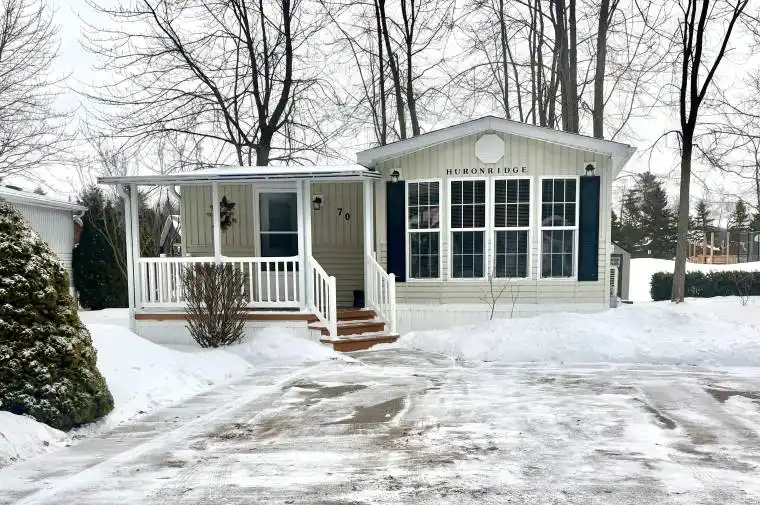 Welcome to 70 Topaz! Your year round retreat in the highly sought-after Country Life Resort in beautiful Wasaga Beach. This charming, move-in ready home offers an affordable way to enjoy resort-style living with current fees of approximately $623 per month, covering taxes, maintenance and access to amenities including five pools (one indoor for year-round use), a splash pad, beach area, playground with jumping pillow, mini-golf, stocked fishing ponds, a community hall for owners to use for private events and a summer calendar of scheduled activities. A convenient walking path also leads to the pristine sands of Wasaga Beach, making lake days effortlessly accessible. Inside, the home is bright, clean, and completely carpet-free, making maintenance refreshingly simple. The functional layout features a spacious bedroom, a 4 piece bathroom, a kitchen with ample cabinet space and lots of storage space in closets and the crawlspace. A high-efficiency furnace and heat pump, both just two years old, provide modern comfort and energy efficiency year-round. The private backyard features a large deck with gas BBQ hookups, a patio and no neighbors behind! This home is truly turnkey, a fantastic opportunity to own a low-maintenance home in a prime Wasaga Beach location, Just move in and enjoy!