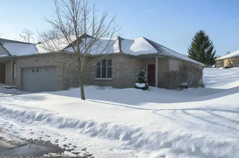 Set within the private, gated Riverbend Golf Community, this one-floor end villa offers exceptional value, space, a very low land lease and a carefree lifestyle in one of London’s most sought-after 50+ enclaves. Surrounded by beautifully maintained grounds, walking trails, and a welcoming community atmosphere, Riverbend is known for ease, connection, and resort-style living, whether you golf or not. This thoughtfully designed home offers just over 1,500 sqft of living space on the main floor plus a finished lower level and abundant storage. A large foyer leads to a bright, open-concept layout. The white kitchen features ample cabinetry and counter space and a sunny eating area overlooking the covered, private patio. The kitchen flows into a very bright great room with fireplace and formal dining, perfect for everyday living and hosting. The main level includes two generous bedrooms, both with direct access to bathrooms, along with convenient main floor laundry. The finished lower level adds outstanding versatility with a large family room, an adjacent games or hobby space (easily convertible to a third bedroom) and a third full bathroom with oversized walk-in shower. Enjoy excellent privacy from your covered porch, a perfect place to relax. An attached two-car garage completes the home. Riverbend offers a secure, low-maintenance lifestyle with 24-hour gated entry and concierge, lawn care, snow removal, irrigation, and access to a vibrant clubhouse featuring a restaurant, lounge, fitness facilities, indoor heated pool, and social activities, all overlooking the private Doug Carrick-designed golf course. With an exceptionally low land lease of $284.32/month, maintenance of $621.39/month, and an annual association fee of $600, this is a fantastic opportunity to enjoy Riverbend living at a very attractive price point.