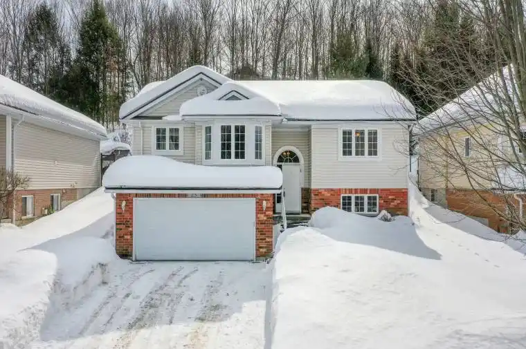 Beautifully maintained home shows real pride of ownership. This 3 bedroom split entry bungalow built in 2007 nestled in this lovely upscale enclave of quality built homes will be a pleasure to own. The quiet cul-de-sac walking distance to downtown Huntsville feels removed from the hustle and bustle yet is also a short stroll to a new plaza with a large grocery and many other amenities. The best side walk in town accesses your subdivision and is also a short stroll to the Hunters Bay Trail which meanders along the Muskoka River to Hunters Bay beach and park. The sunlit main level features quintessential open concept living/dining/kitchen with a walk-out to your rear deck and private backyard. A Japanese maple and other perennials, decorative bushes and shrubs are easy upkeep and visually pleasing. The rear yard does not feel like you are located in the center of a vibrant growing community. There are 3 ample size bedrooms on the main level and the primary has a 4 piece ensuite. Previous owners were a family and current owners are retirees with a nice mix of both throughout the area. The lower level family room is spacious and has good size windows making it great for a family room, pool table recreation area, play area for the kids, theatre room…you decide. The street traffic is local only so a great area for kids to ride their bikes or safely play. A roughed in 4 piece bathroom adjacent to the finished area downstairs is ready to create a 3rd bathroom. More development potential in the lower level for a workshop still offering plenty of storage. Attached double car garage, paved double driveway. Muskoka granite steps from the driveway to the front door is an attractive and inviting approach to this lovely home. Front yard garden areas, including a beautifully shaped stunning maple. This neighbourhood shines in the spring/summer with the landscaped and maintained yards and homes. A quiet and lovely neighbourhood that you will be proud to call home.