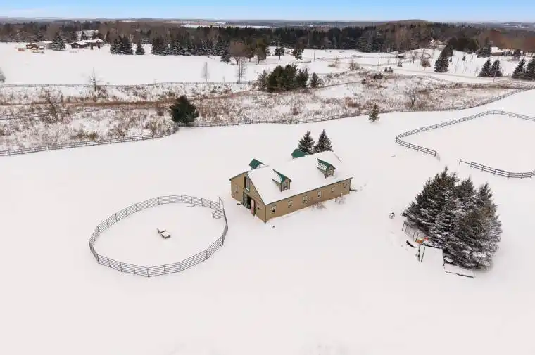 Equestrian enthusiasts will appreciate the newer two-storey, 10-stall barn constructed with premium oak board and equipped with electric heaters, water access, and two tack rooms, along with approximately 15 fenced acres and multiple paddocks ideal for horses, chickens, and other livestock.