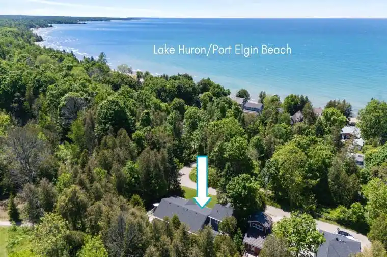 Just ONE BLOCK from the BEACH and backing onto serene green space in the heart of Saugeen Shores, this rare half-acre property offers the perfect blend of privacy, natural beauty, and unbeatable location. Whether you’re looking for a year-round residence, vacation getaway, or income-generating investment, this one-of-a-kind retreat has it all. The main home features 3 spacious bedrooms and 2 full bathrooms, with a vaulted-ceiling living room that flows seamlessly into the open-concept kitchen and dining area. Step out onto the stunning wraparound deck or relax on the covered front porch, all surrounded by mature trees. A spring-fed pond and cozy fire-pit area add to the peaceful, cottage-like atmosphere, offering a true escape just steps from the sandy Port Elgin shoreline via nearby Izzard Road. Adding to its versatility and value, the fully self-contained modern bunkie above the double garage provides a luxurious space for guests or excellent potential as a short-term rental for Airbnb or long-term accommodation for Bruce Power workers. Or maximize your income and rent out both year round! The home features durable hard surface flooring throughout, asphalt shingles (2016) and forced air gas heat with air conditioning, an ensuite bath, hot tub rough-in, a sand point well for garden watering, and a spacious triple-width driveway. This is an extraordinary opportunity to own a private, four season home with strong income potential in one of the most sought-after communities along Lake Huron. Don’t miss your chance to make this exceptional Saugeen Shores property your own!