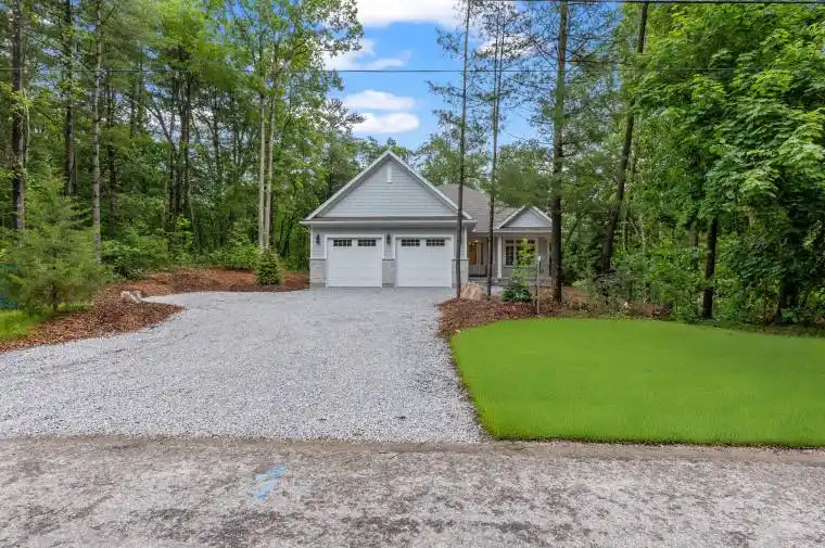 This coastal-inspired luxury home offers every imaginable amenity and is currently under construction by Spheero Homes. Nestled in the trees, this 3+2 Bed home boasts over 3740 sq ft of finished expertly designed living space. As you approach the property, take in the beautiful curb appeal and serene surrounding. Enter through the front door into the grand foyer featuring 10ft ceilings and custom oak bench through to the open concept main level including generous kitchen boasting custom high-end cabinetry and countertops, island with breakfast bar, hidden prep area with additional sink and pantry; dinette with access to the backyard and covered porch; bright great room with soaring vaulted ceiling, and cozy gas fireplace with custom surround and mantle; convenient main floor laundry/mud room with custom storage and bench; 3-piece bathroom; & 3 spacious bedrooms including primary suite with box tray ceiling, walk-in closet, & spa-like ensuite with double sinks and tiled shower with glass enclosure. The fully finished lower level boasts an additional 2 beds, 2 baths, family room and potential bonus room. Enjoy the sights and sounds of nature on your covered front porch or on the 432 sq ft covered porch at the rear of the property. Features include: fully insulated 27’x26′ garage with oversized 10’x9′ doors, side mount garage door openers, hardwood flooring throughout main level and basement (excluding bedrooms, baths and flex basement room), heated floors in all bathrooms, oversized basement windows, 8’10” foundation walls for high basement ceiling, gutter guards, wifi controlled radiant in floor heat in garage, basement and rear porch, gas line for stove & BBQ, Lennox HVAC with steam humidifier, boiler with on demand hot water & more! Wiring roughed in for: future hot tub, future EV charger, 2 ceiling fans on rear porch, theatre & security systems. Rear cedar hedge with privacy fence. A must see home where no detail was missed!
