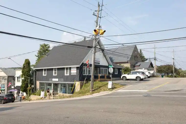 Ideal location for a commercial building featuring two available lease spaces. One is occupied by a triple-A long-term tenant, while the other is vacant and ready for leasing. This prime location in downtown Huntsville is just steps away from Main Street, the Muskoka River, the renowned swing bridge, and the lively community that Huntsville provides. The upper level boasts a spacious 1,500 square foot bright office area with walk-in entry. It is equipped with fibre internet and phone connectivity. The space includes enhancements such as Caesarstone countertops in the kitchen and bathroom, solid engineered hardwood flooring, and robust interior doors. Additionally, there is a granite entryway and a wood-burning fireplace. The layout comprises three private, roomy offices, a large open workspace, a kitchen area, a bathroom with a shower, and two storage rooms. The renovations are quite impressive. The lower level features a wall of windows providing excellent street front visibility, situated near the intersection of Main Street and Brunel, with a rare and commanding 33 feet of street-level frontage on Brunel Road. The 920 square foot area is designed with three offices, an open common area with a reception space, and one restroom. This property is located in the Central Business District with C7 zoning, allowing for a wide range of permitted uses, and includes six dedicated parking spots
