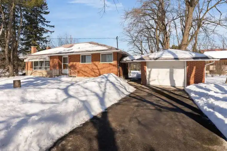 PRIVATE 2-ACRE PROPERTY WITH A SOLID RAISED BUNGALOW, MULTIPLE OUTBUILDINGS, & EXCITING SEVERANCE POTENTIAL! Set on a peaceful two-acre property surrounded by mature trees and natural beauty just outside Barrie, this property presents an exciting opportunity for homeowners, investors, and builders alike. Enjoy a quiet rural setting while remaining just minutes from the amenities of South Barrie and only nine minutes to Friday Harbour Resort for waterfront dining, marina access, and year-round recreation. The solid brick raised bungalow boasts great bones and endless potential to renovate, flip, or create a custom home tailored to your vision, with the added possibility of lot severance into two building lots, subject to township approval. The bright main level features an open living room, dining area and kitchen layout filled with natural light from large mahogany windows that add warmth and character, along with three comfortable bedrooms and a 3-piece bathroom. Downstairs, the full basement offers a spacious recreation room anchored by a cozy wood-burning fireplace, games area, plus laundry, storage space, and a convenient separate entrance. Outside, the property continues to impress with a detached oversized single garage, ample driveway parking, and a covered patio connecting the home and garage for a sheltered outdoor space. A large barn set back from the house is equipped with power, water, and a spacious loft, complemented by an additional outbuilding currently used for wood storage. With a well water system including a holding tank and well pump already in place, this remarkable property delivers space, versatility, and exceptional potential in a sought-after location.