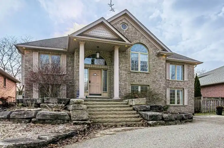 Welcome to this beautiful and custom-built raised bungalow offering 4 bedrooms and 2.5 bathrooms, complete with a timeless front stone exterior and a circular driveway that adds fantastic curb appeal. Ideally located, this home is within walking distance to the Community Centre, ball parks, skate park and an outdoor rink. Close to great school and amazing downtown amenities. Upstairs, the main level offers a bright open-concept living space filled with natural light, beautiful hardwood floors and an inviting gas fireplace. The dining area, complete with an entertainers pantry, flows seamlessly into the expansive kitchen featuring a large quartz island and plenty of cabinet space. The primary bedroom includes a walk-in closet, patio doors leading to the rear deck, and a luxurious ensuite with a relaxing soaker tub and separate shower. Also on this level is a second bedroom or office space, along with convenient main floor laundry. The lower level is sure to impress with unlimited potential perfect for guests, older teens, in-law suite or duplex potential! A tiled foyer welcomes you into a comfortable family room featuring an additional cozy gas fireplace. This level also features a spacious kitchenette with dining area, a full 4-peice bathroom and two well sized bedrooms. What truly sets this lower level apart are the numerous oversized windows, allowing an abundance of natural light to pour in making the space feel bright and open – rare for a lower level.