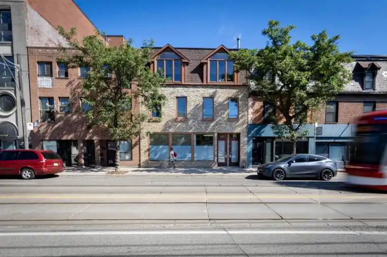 Functionality and luxury. Thoughtfully renovated. Bright, expansive live/work space in the perfect location. HIGHLIGHTS: Customizable for retail, office, or residential use. Occupy the space you need and rent the rest. Private garage, expansive great room, bright yoga studio, stylish wood-burning fireplace, 6 skylights, Jacuzzi tub, and glass-enclosed showers. Bamboo and granite floors throughout. LOCATION: Easy access to DVP/Gardiner, Queen streetcar, and future Ontario Line subway. MAIN FLOOR: Open retail/office area, large windows, 4 private offices, tech room, private garage, and mudroom. 2ND FLOOR: bright high-ceiling studio with two walk-out doors to a huge deck perfect for yoga, photography, a family room, media room or staff room. Kitchenette, washroom, and 3 private offices. PENTHOUSE: A stunning, light-filled space with south-facing windows, 6skylights, and a 12 ft ceiling. The great room has a European wood-burning fireplace, and a designer kitchen boasting ample storage, a granite island, induction range, and stainless-steel appliances. The primary ensuite includes a jetted tub, oversized glass shower, and skylight. Two bedrooms feature skylights and access to a spacious deck. OUTSIDE: Built-in gas BBQ line, heated gutters, and new roof shingles (2024). BASEMENT: Finished offices, storage rooms, utility room, and 3 washrooms.