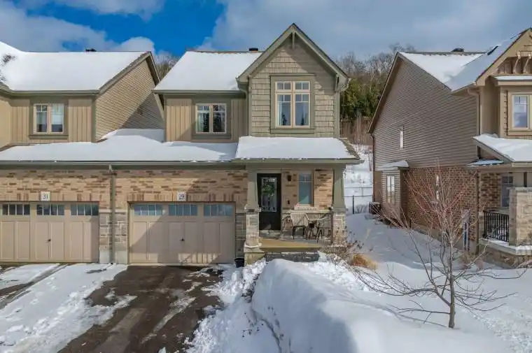 Welcome to 29 Kelsey Madison Court, an upgraded end-unit townhome tucked into one of Huntsville’s quiet and sought-after neighbourhoods. Backing onto iconic Muskoka rock and mature forest, this property offers a rare sense of privacy and a beautiful natural backdrop right in your own backyard. Inside, the main living space feels warm and inviting, anchored by a cozy gas fireplace that creates the perfect setting for relaxing or entertaining. The thoughtful layout flows seamlessly through the principal rooms, while the added windows of this end unit fill the home with natural light. Upstairs, the spacious primary bedroom features its own private ensuite, while two additional bedrooms offer flexible space for family, guests, or a home office. The finished basement extends the living space even further, complete with a third full bathroom and a dedicated laundry room-ideal for a recreation room, guest suite, or additional family living area. The attached garage provides convenient interior access, along with direct access to the backyard for added everyday functionality. Step outside to enjoy the newly fenced backyard (2025), a private outdoor retreat where you can unwind and take in the beauty of the surrounding Muskoka landscape. Fully serviced with natural gas, municipal water and sewer, and high-speed internet, this home offers the comfort of modern connections while being surrounded by nature. Located just minutes from downtown Huntsville, you’ll enjoy quick access to shops, restaurants, schools, the hospital, and Highway 11-making commuting and daily errands effortless while still enjoying the peace of a residential neighbourhood. Don’t miss the opportunity to make this beautiful townhome the backdrop for your next chapter.