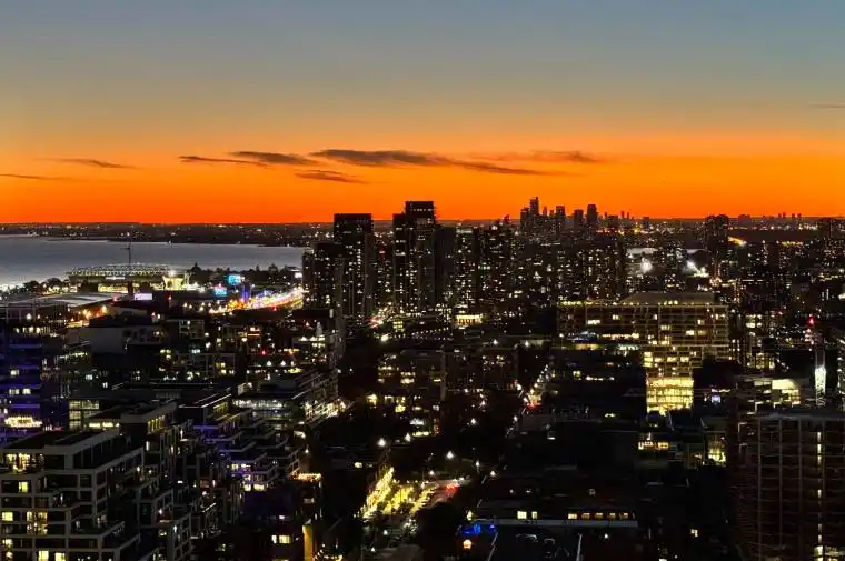 Perched on the 41st floor, this stunning southwest corner suite at 55 Mercer offers breathtaking, unobstructed views of the CN Tower, Rogers Centre, the Toronto skyline, and Lake Ontario. Floor-to-ceiling windows flood the home with natural light while showcasing spectacular city views from every room.This rare and highly functional three-bedroom, two-bathroom layout maximizes every square foot with a bright, open-concept living and dining area, a modern kitchen with an island, and seamless access to a private balcony overlooking the city. The versatile third bedroom is perfect for a home office, guest room, or growing family. Completed in 2024, 55 Mercer is one of downtown Toronto’s newest luxury residences, located steps from King West, the Financial District, Rogers Centre, and the city’s best restaurants, shopping, and entertainment. Residents enjoy world-class amenities across three levels, including a state-of-the-art fitness centre with Peloton pods and HIIT training zones, yoga studio, infrared cedar saunas, co-working spaces, boardrooms, landscaped outdoor terraces, basketball half-court, BBQ areas and a dog run. Parking and locker included. Bonus: Bell high-speed internet is included in the maintenance fees for approximately the next 5 years. A rare opportunity to own a high-floor corner residence with iconic skyline views in the heart of downtown Toronto.