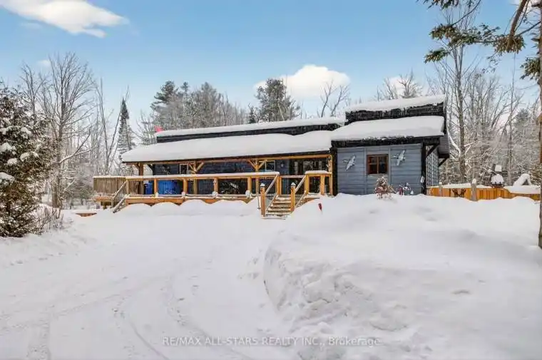Welcome to this one-of-a-kind post-and-beam home, rich in character and warmth, set on approximately of an acre in a welcoming, family-oriented community near Shadow Lake. From the moment you arrive, wrap-around decks and mature surroundings set the tone for relaxed country living. Inside, soaring vaulted ceilings, exposed beams, and a stunning open-concept layout create an inviting space perfect for everyday living and entertaining. The main level offers 2 well-sized bedrooms, while the full walk-out basement features a bright family room, an additional bedroom, laundry area, and a versatile space currently used as a hair salon – ideal for a home-based business, studio, or hobby room. With a separate basement entrance, the lower level offers excellent potential to accommodate multigenerational living or extended family needs. Outdoors, the property truly shines with bountiful summer gardens, a peaceful pond, and a charming bunkie perfect for guests, teens, or creative space. Located just steps to Shadow Lake with access to a public beach and playground, and with a boat launch just up the street, this home offers a lake lifestyle without waterfront taxes. Conveniently situated minutes to Coboconk for shopping and amenities, approximately 35 minutes to Lindsay, and 40 minutes to Orillia – this is a rare opportunity to enjoy space, flexibility, and the best of Kawartha living.