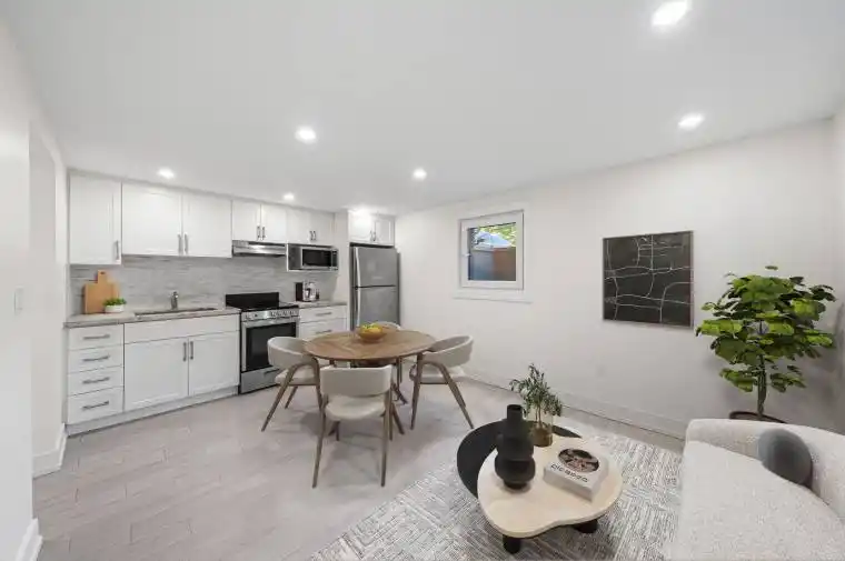 This renovated 2-bed, 1-bath apartment sits on the lower level of a beautifully maintained triplex in Long Branch, offering modern finishes and smart use of space. The open-concept living and kitchen area features a large tilt-and-turn window for natural light, sleek pot lights, granite counters, tile backsplash, and stainless steel appliances. Both bedrooms are well-sized with built-in closet organizers, and the updated 3-piece bathroom includes a modern shower and clean, contemporary finishes. Located on a quiet street steps away from Lake Promenade, enjoy easy access to parks, trails, & retail shops, with the TTC & GO Train nearby for easy commuting. Dont miss the chance to make this charming lower level unit your new home in the sought-after Long Branch area! Water and heat included, tenant pays hydro.