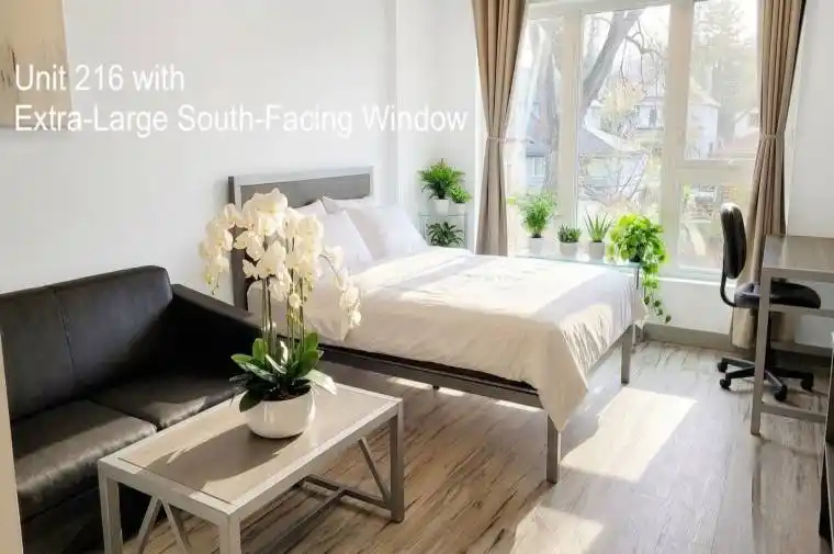 ***Flexible lease term: preferred 8 months (May 1 to Dec 31), but open to 6-month or 1-year lease***Fully furnished south-facing unit with a private kitchen and bathroom, features an extra-large south-facing window, filling the space with natural sunlight throughout the day. Enjoy a modern white kitchen with stainless steel appliances that combine style and functionality. Relax with serene views of lush green space and a nearby trail right outside your window, surrounded by mature trees in a peaceful, park-like setting-perfect for those seeking a quiet and nature-filled environment.