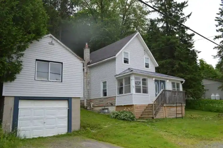 Location Location Location: Neat and tidy 3 bedroom/2 bath home located in the village of Minden! Ideal starter, rental or retirement home! Main floor boast open concept living/eating and kitchen and a main floor bedroom and bathroom. Upper level features 2 large and bright bedrooms and full bathroom. Wrap around porch for additional 3 season use. Detached garage/workshop with a full loft for storage. Town water and town sewers. Very private back yard. Walk to ALL in town amenities.